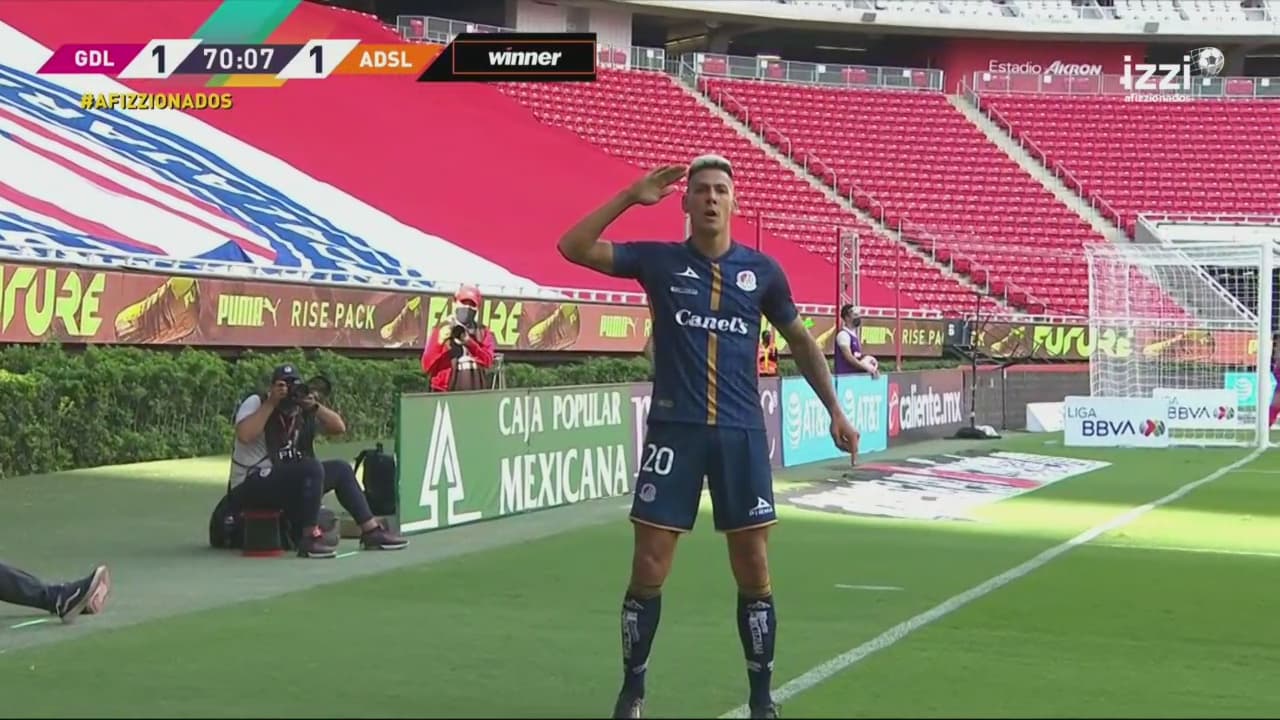 San Luis se sacudió el dominio y el gol de Guadalajara, con un automatismo que se finca en el centro a primer poste y remate de Quiroga con la cabeza. Pablo Barrera puso la pelota precisa.