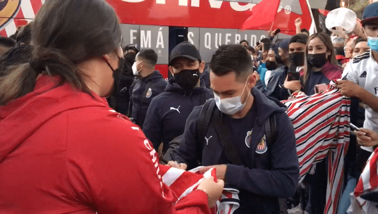 En el hotel de concentración llegó el camión que transportó al Rebaño Sagrado y ahí fue donde se encontraron con bastante gente enfundada en la playera rojiblanca para darle la bienvenida.