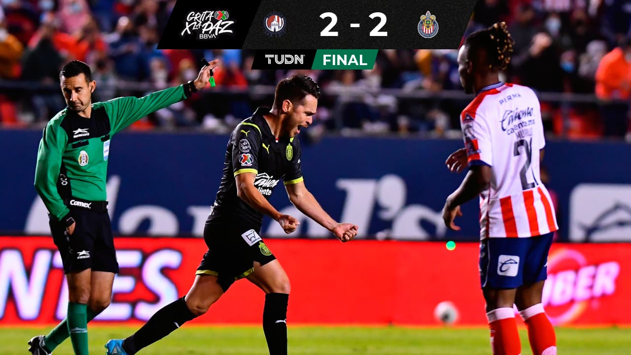 Chivas rescató un punto en San Luis jugando una gran segunda parte luego de ir perdiendo 2-0 en el primer lapso, 'el Nene' Beltrán y Angulo marcaron los goles del Rebaño Sagrado, Berterame y Juárez hicieron los tantos del Atlético de San Luis.