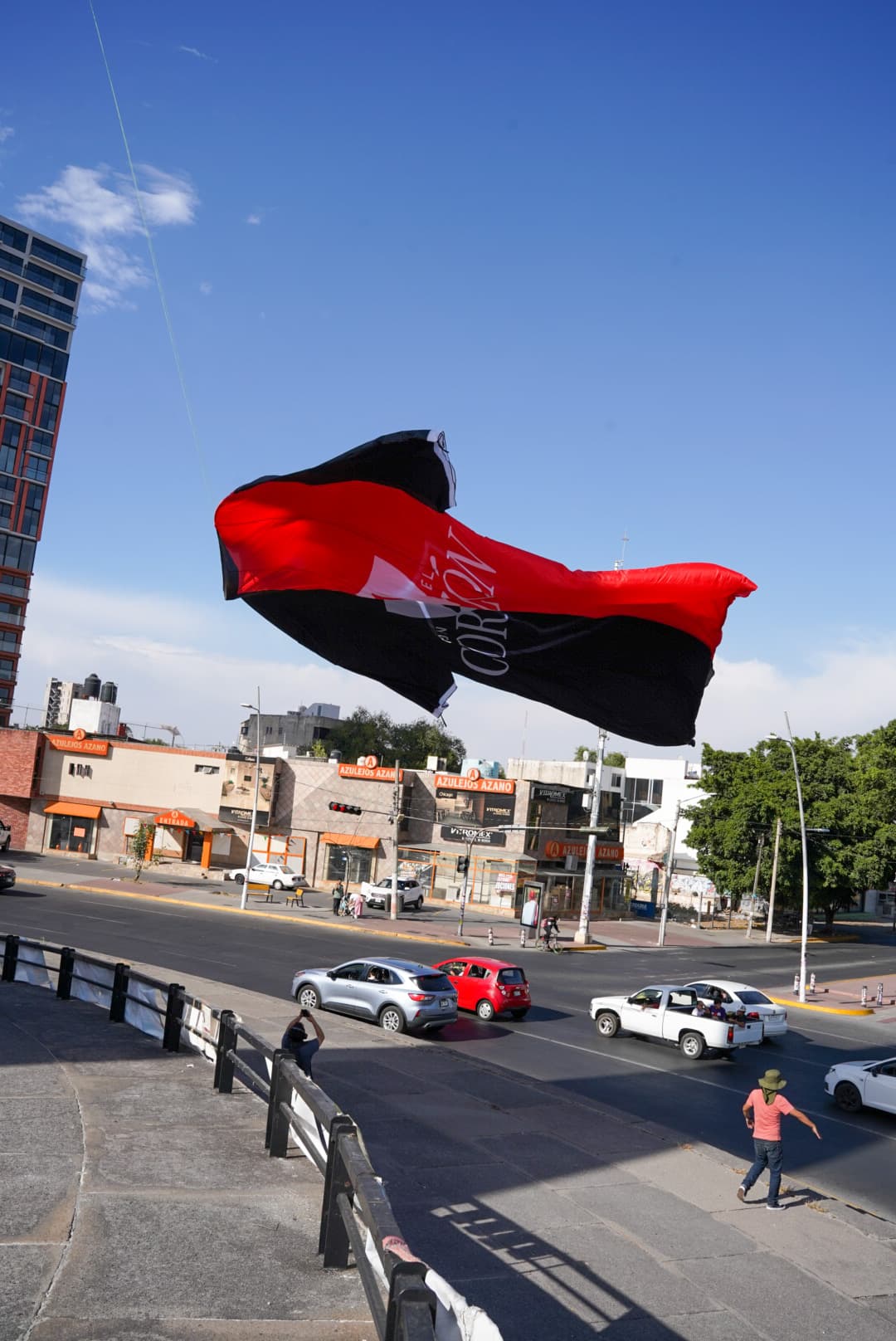 Los Rojinegros quieren dar a conocer quién manda en La Perla Tapatía y para ellos pusieron a volar una playera gigante rojinegra por los cielos de la hermosa ciudad.