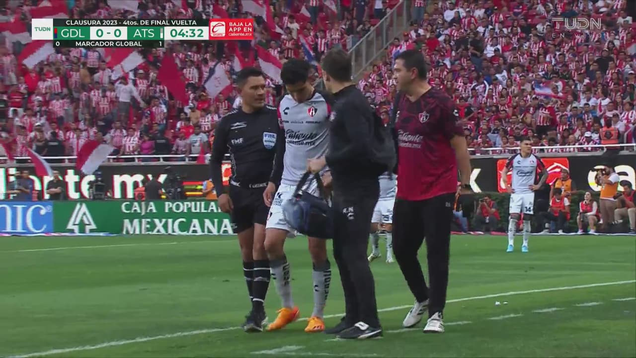 La lesión parece ser seria para el jugador de Atlas, quien sale del césped desconcertado y los Rojinegros podrían tener su primer cambio.