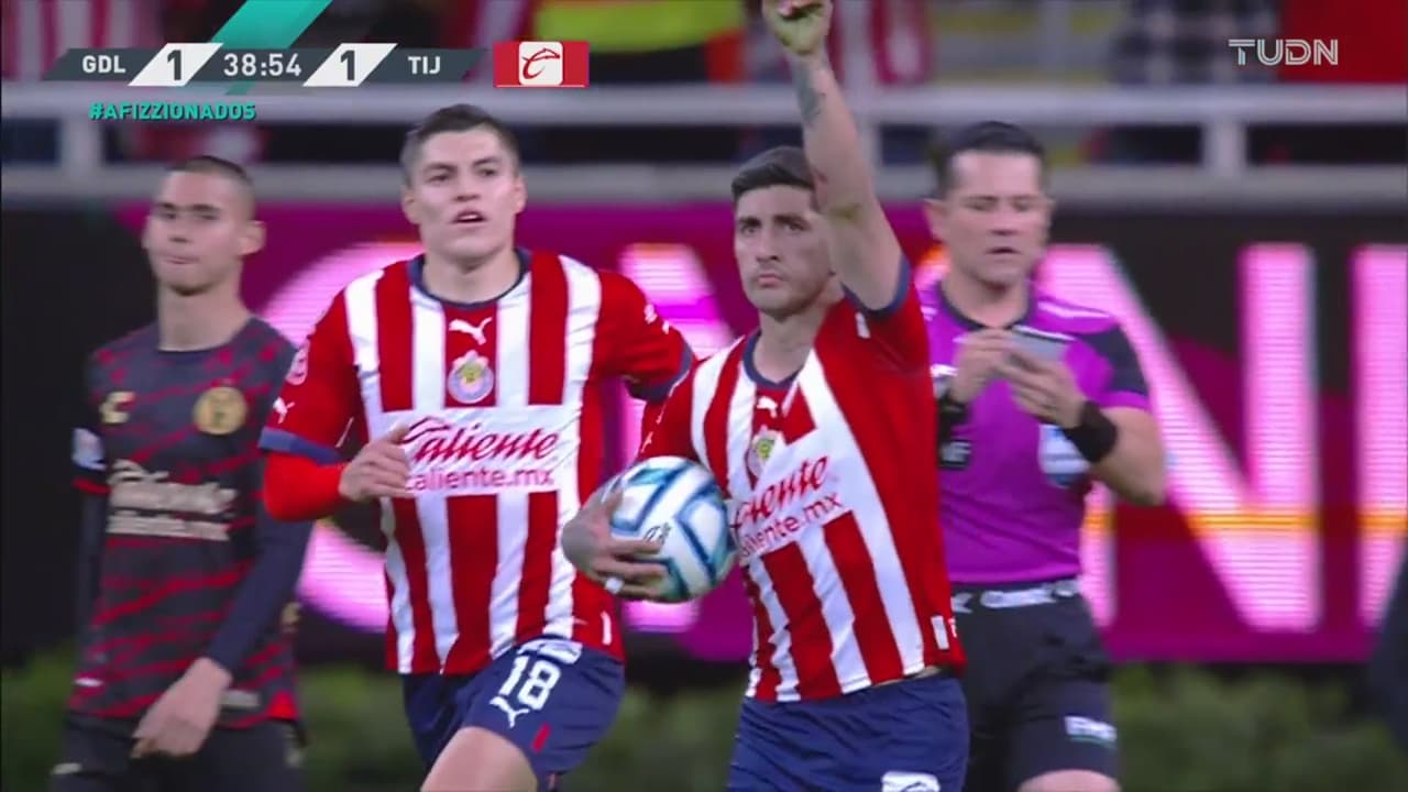 Al minuto 90, el árbitro Diego Montaño señaló la falta a favor del Guadalajara tras confirmar en el VAR una mano de Xolos. Ronaldo Cisneros le pidió el balón a Guzmán que se lo cedió, pero Paunovic desde el banquillo ordenó que el Pocho fuera quien ejecutara el penal.
