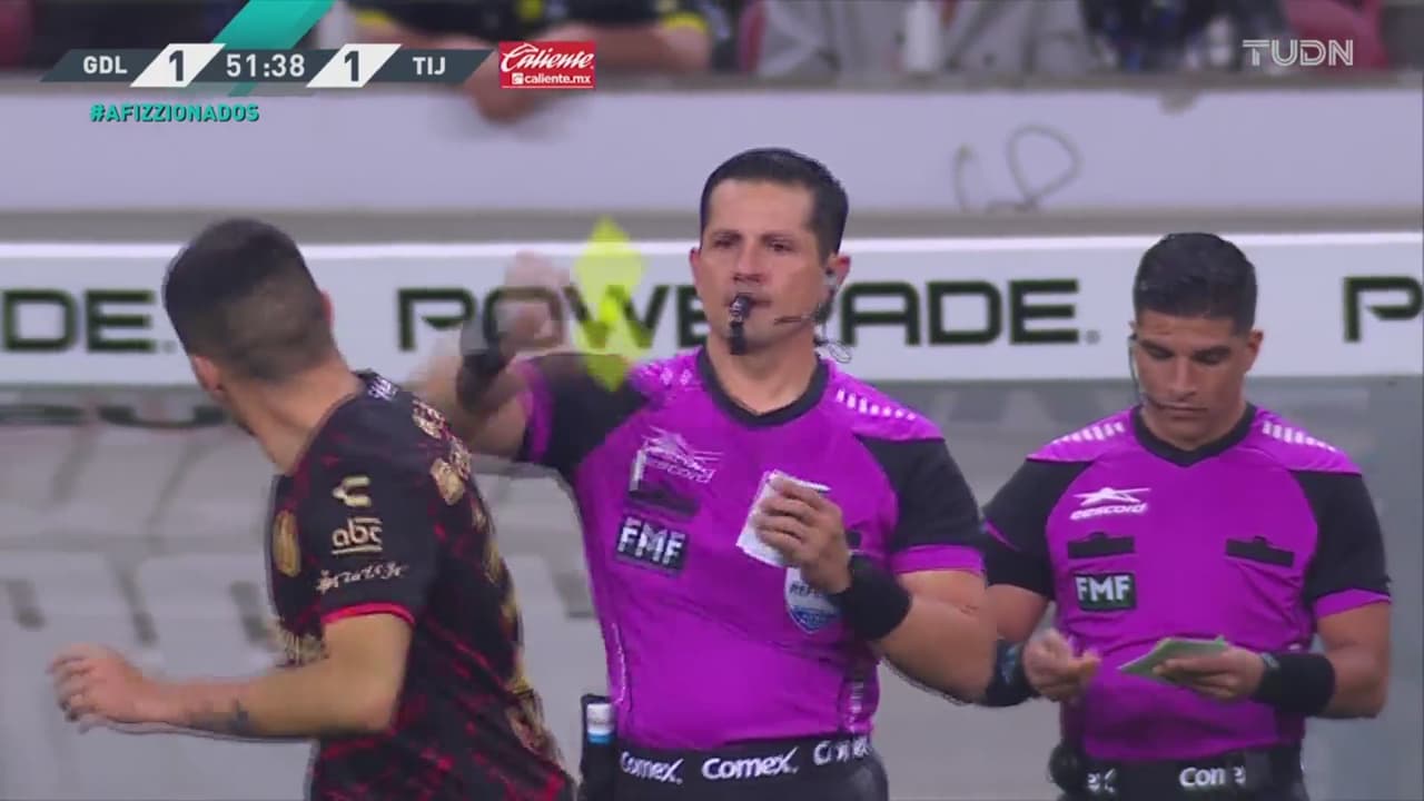 Alejandro Martínez, de Xolos, fue amonestado por una fuerte entrada sobre el mediocampista de Chivas, Víctor 'Pocho' Guzmán.