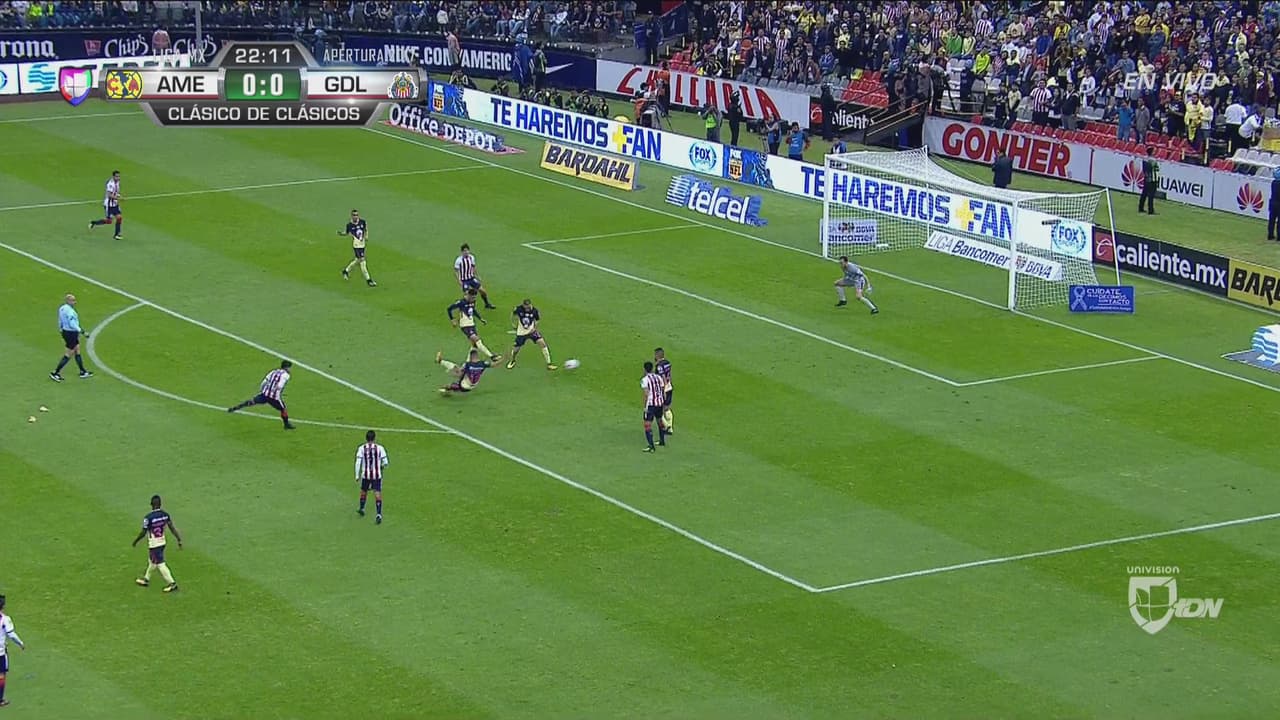 En una buena jugada colectiva, Eduardo López sacó el primer susto para el América.