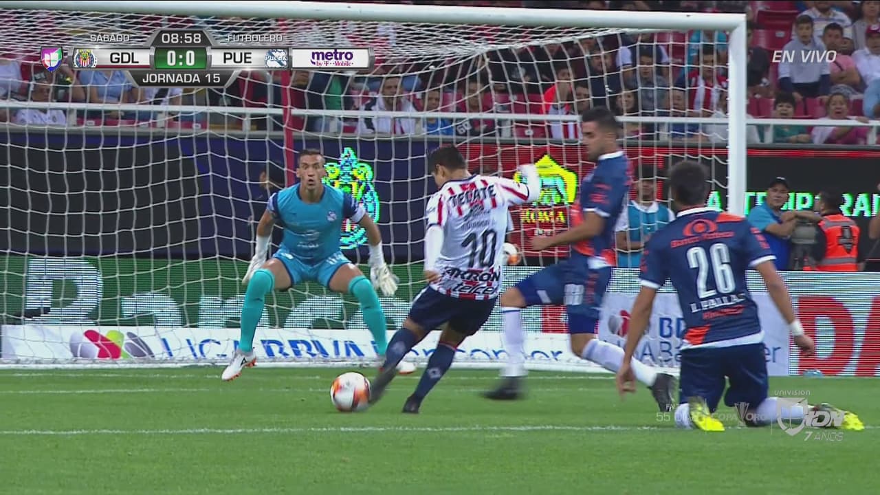 Buena jugada colectiva entre Alexis Vega y Javier López, quien se metió al área y sacó un disparo que se fue apenas arriba de la portería.
