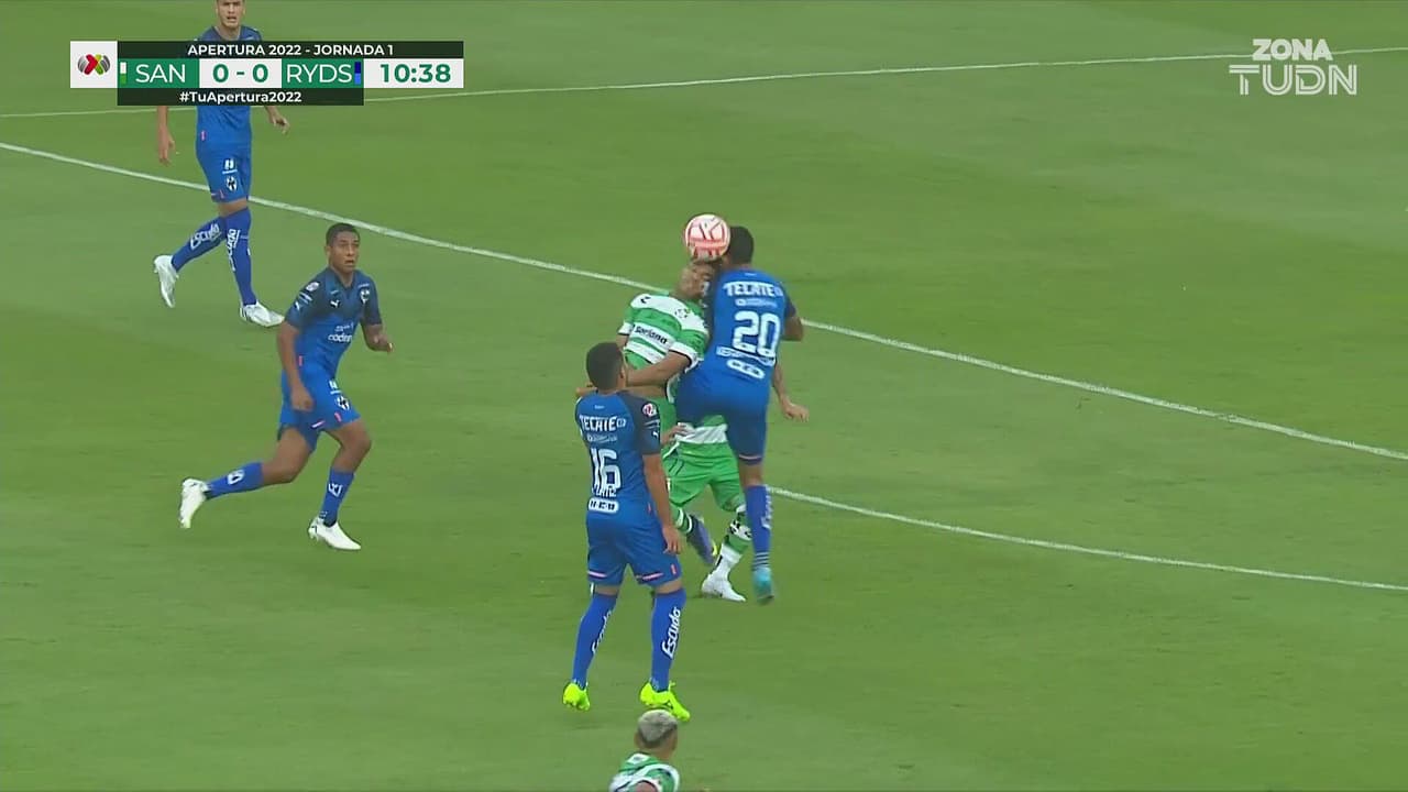 Ambos jugadores disputaban el balón por aire, pero el defensa del Monterrey se llevó la peor parte.