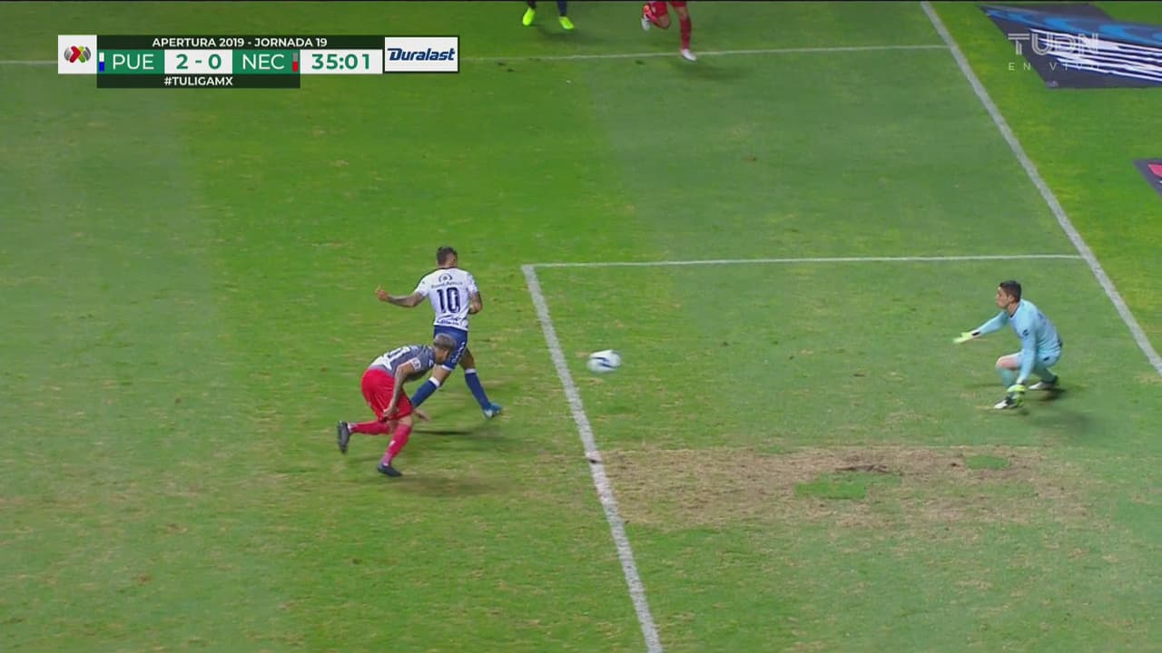 Lucas Cavallini asiste al delantero uruguayo quien se anticipa a su marca y con la pierna izquierda manda el balón al fondo de las redes.