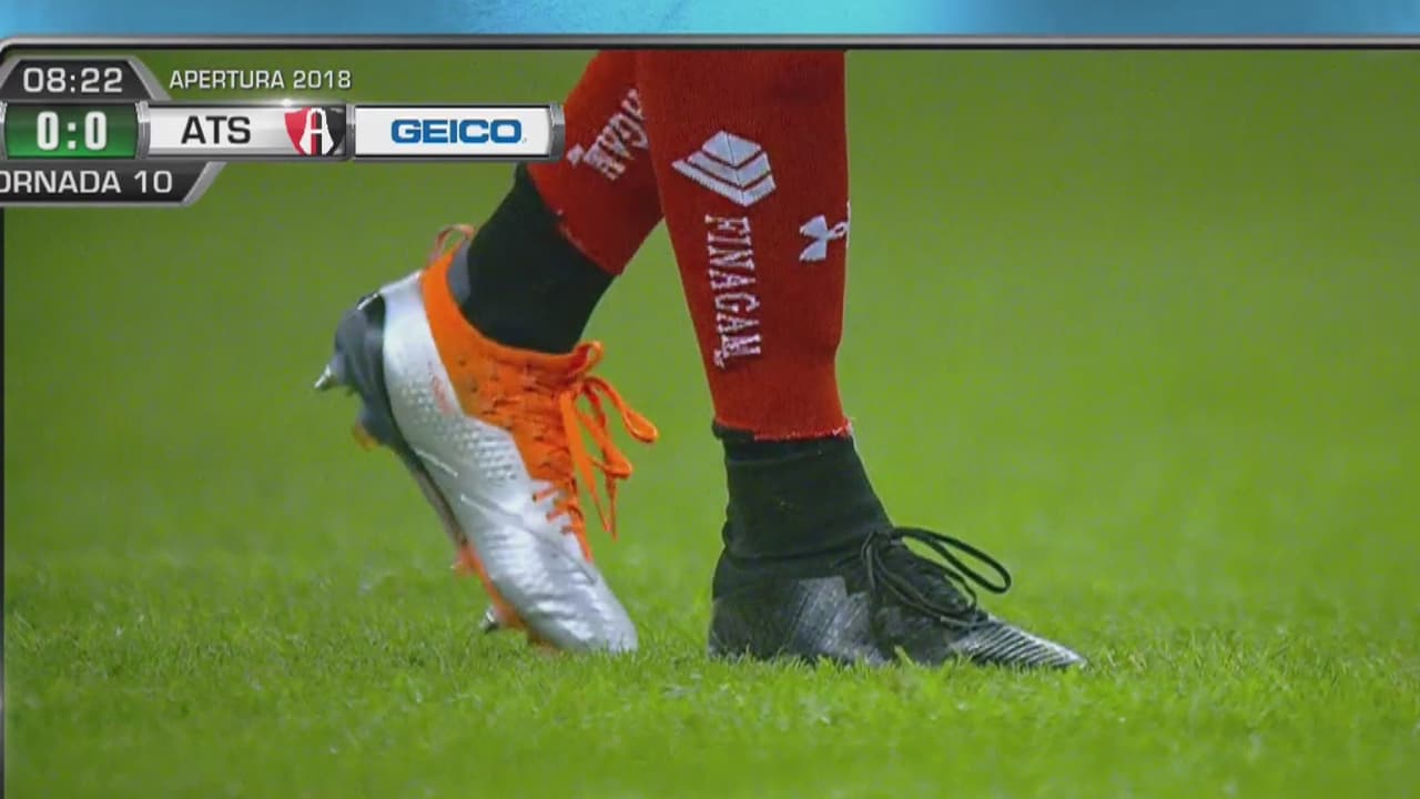 A modo de protección para el tobillo, el portero de Cruz Azul saltó a la cancha con un dos ‘tachones’ de diferentes modelos.