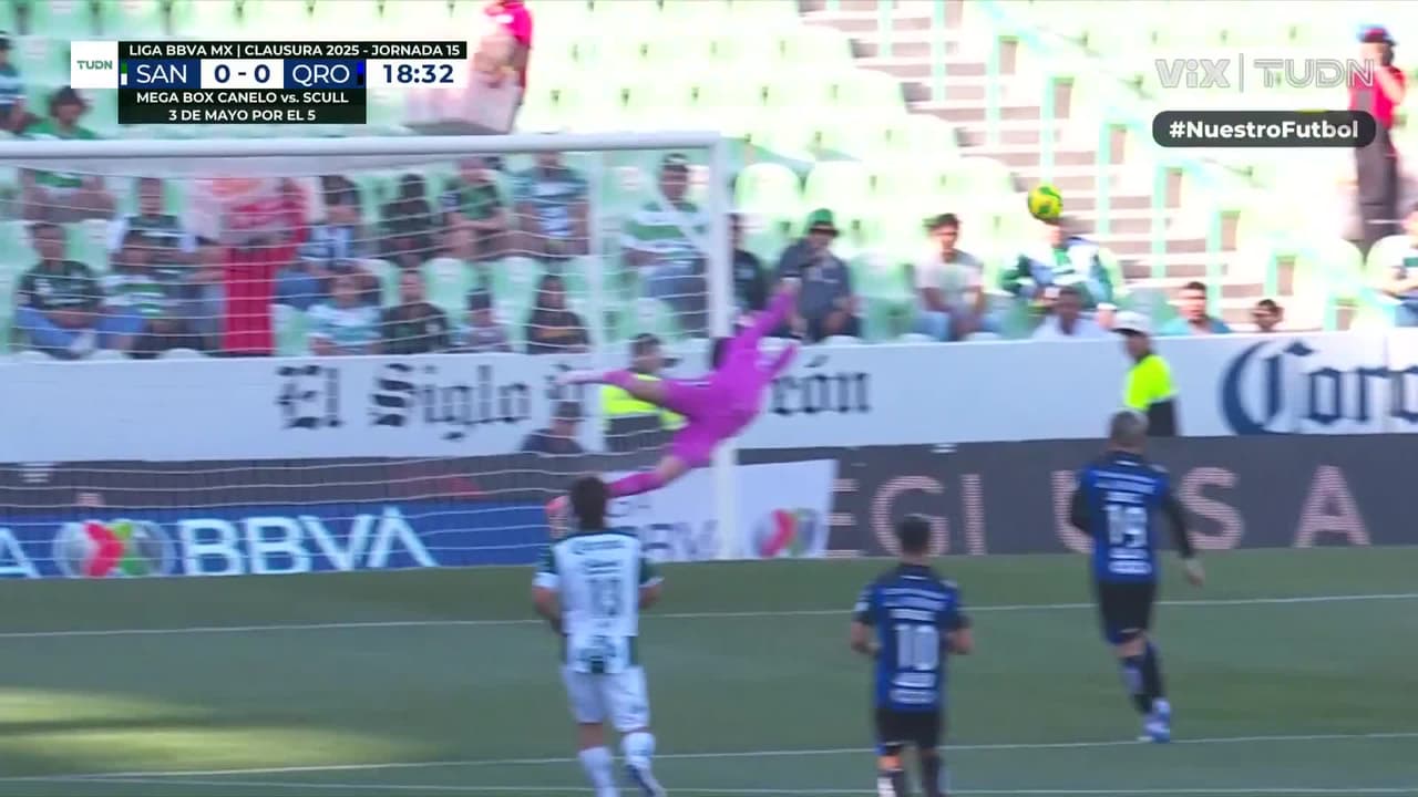 Ronaldo se animó de larga distancia para sorprender a Carlos Acevedo, pero el balón terminó por un costado.