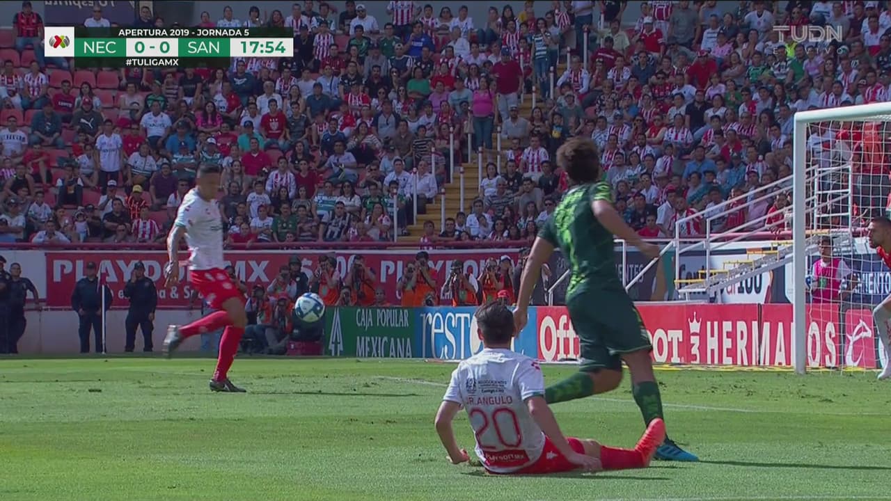 A los 16 minutos, Necaxa tuvo esta gran opción pero el delantero le erró a la pelota.