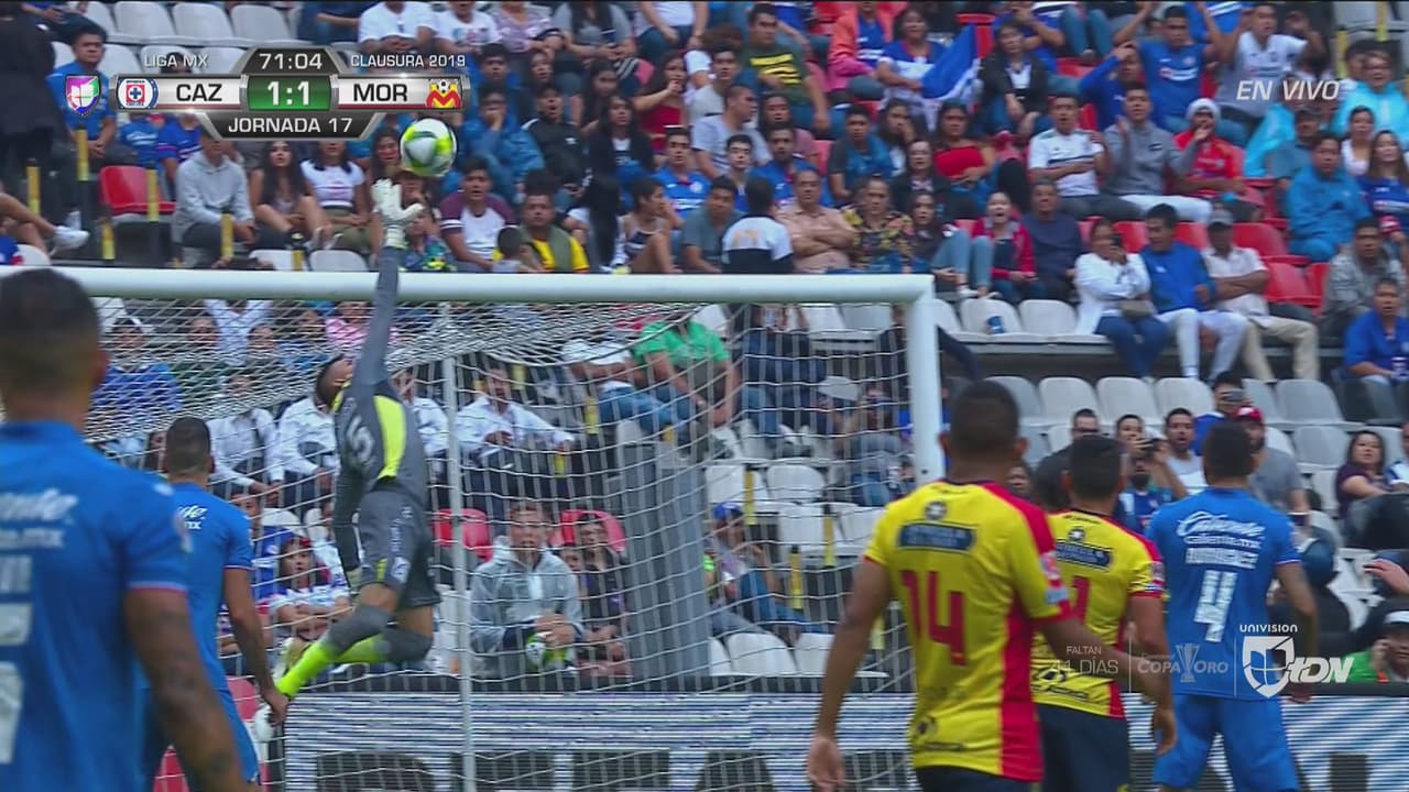 Remate de cabeza del paraguayo que el arquero de Monarcas evita con un gran lance.