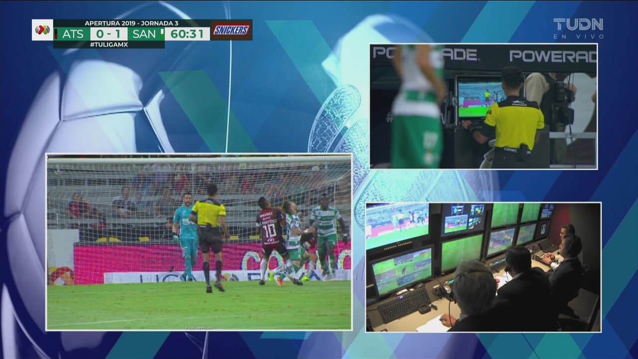 Con el VAR se aprecia empujón de Osvaldito sobre Gorriarán de Santos