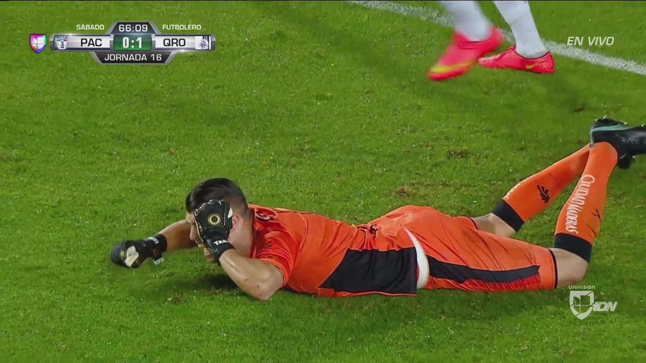 El arquero Tiago Volpi detuvo dos peligrosos disparos de los Tuzos y se llevó de paso un golpe en la cabeza, en otro intento del Pachuca por igualarle al Querétaro.