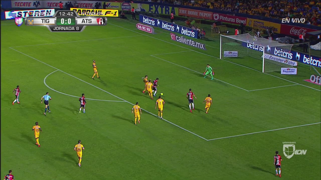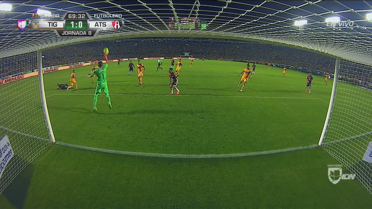 Con la ventaja de su lado, Tigres bajó la intensidad y por momentos le permitió a los rojinegros probar a Nahuel Guzmán. Jugadas en fuera de lugar, disparos al arco, y esta de Caraglio que pudo ser un gran gol, quizás el tanto de la jornada.