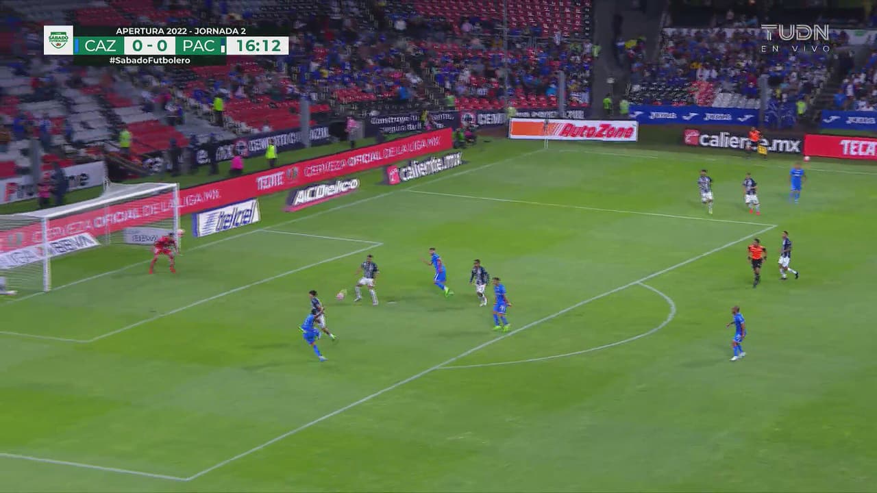 Buen centro de Tabó que el ‘Brujo’ remató con la derecha, pero no pudo darle dirección de gol al 17’.