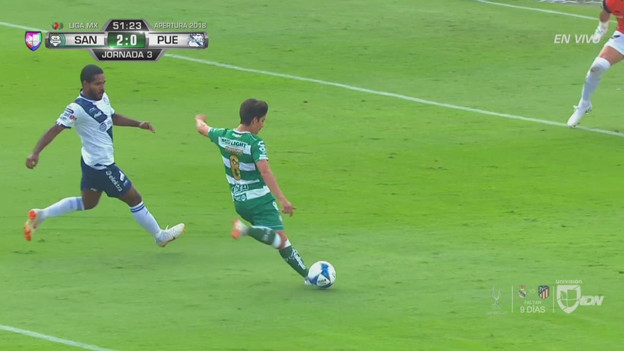 Julio César Furch filtra gran pase para Carlos Orrantia, quien define con disparo cruzado por abajo.