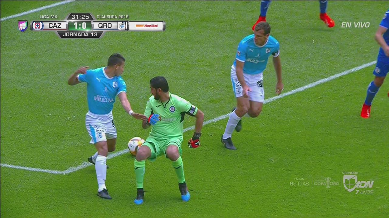 El arquero de Cruz Azul soltó el balón cuando se disponía a despejar tras un tiro libre indirecto de Querétaro. Por fortuna pudo recuperar el esférico.