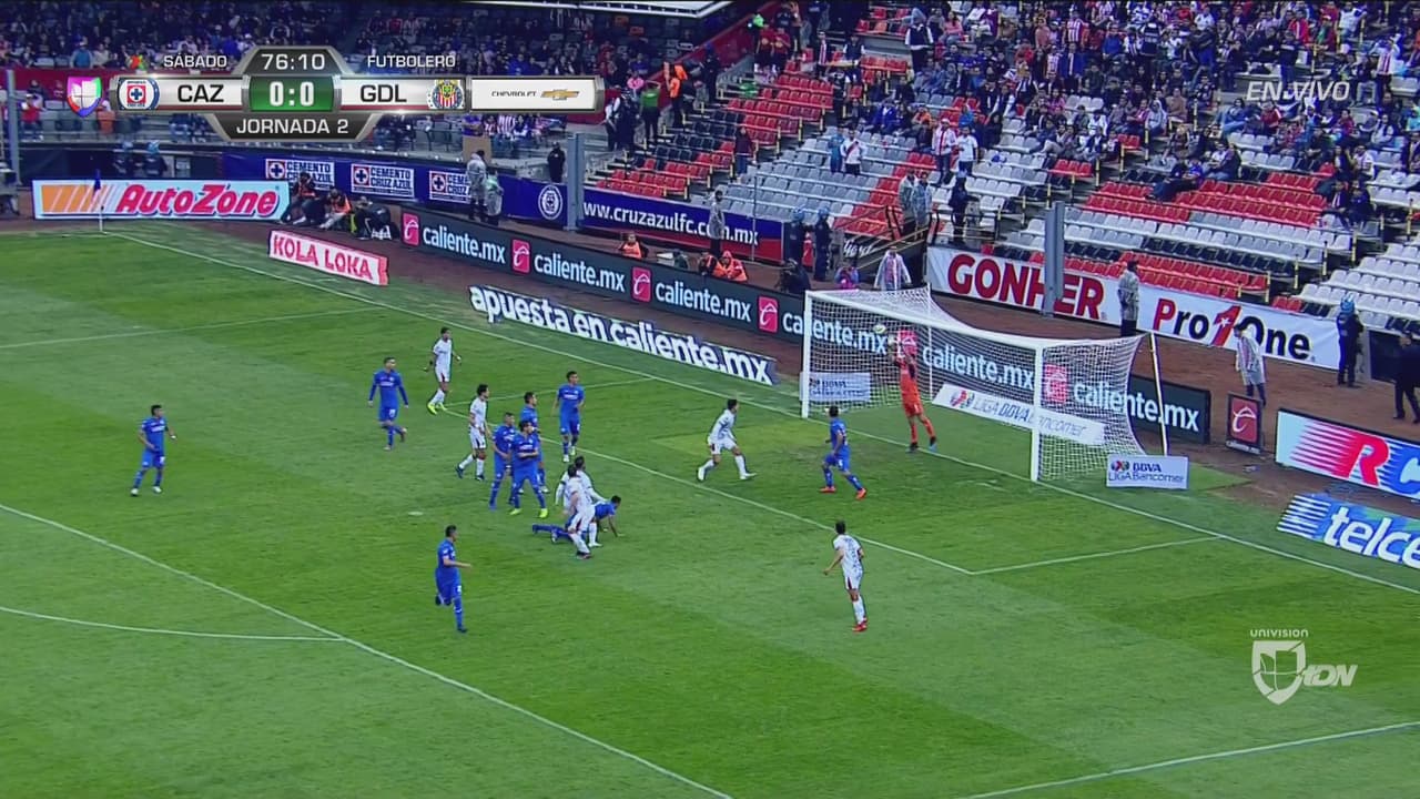 De forma increíble se salva Cruz Azul gracias a la gran actuación de su guardameta quien, atento, rechaza el esférico.