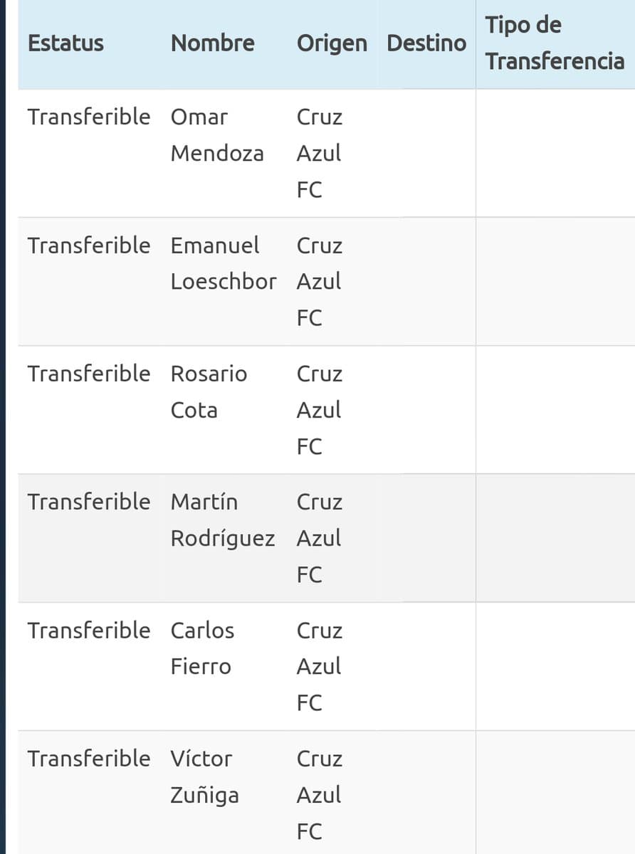 Cruz Azul amplía su lista de transferibles a seis jugadores
