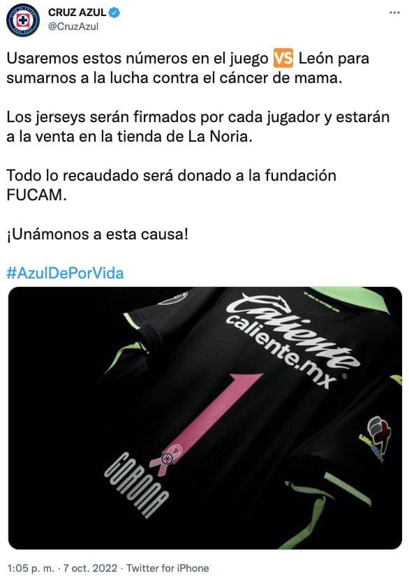 “Usaremos estos números en el juego vs León para sumarnos a la lucha contra el cáncer de mama”, puede leerse en el mensaje que compartieron en su perfil de twitter.