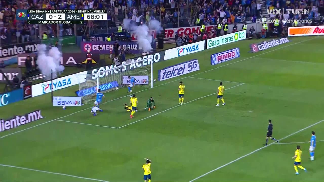 Toro Fernández remata de cabeza en e área chica y lo manda a la red para el Cruz Azul 2-3 América.