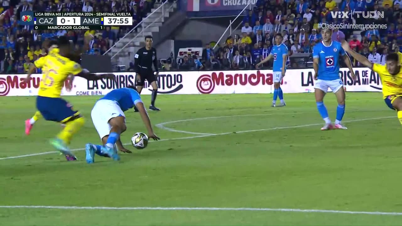 Zendejas le pega desde los linderos del área, deja sin oportunidadd a Mier y la manda al fondo para el Cruz Azul 0-1 América.