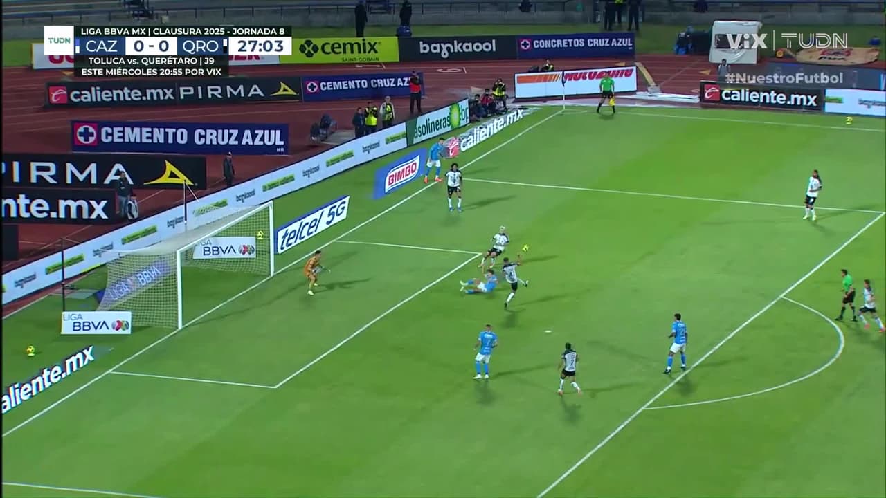Querétaro llega con peligro, pero Cruz Azul despeja a tiempo para evitar la caída de su arco.