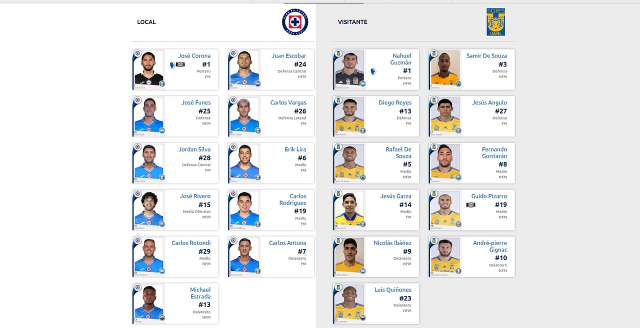 ¡LISTAS LAS ALINEACIONES PARA EL CRUZ AZUL VS. TIGRES!