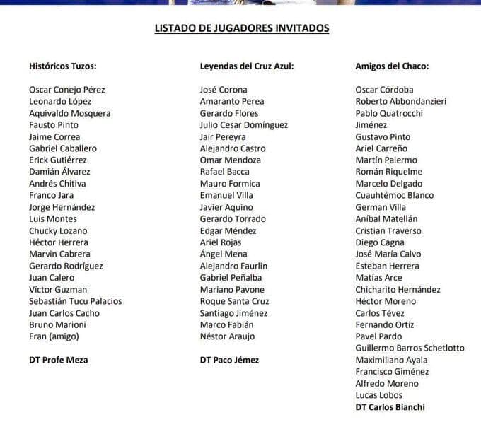Además, se contempla la presencia de los equipos "Leyendas del Cruz Azul" y "Amigos del Chaco", mismos que tendrán como técnicos a Paco Jémez y Carlos Bianchi respectivamente. Enrique Meza estará en el banco del conjunto de los históricos del Pachuca.