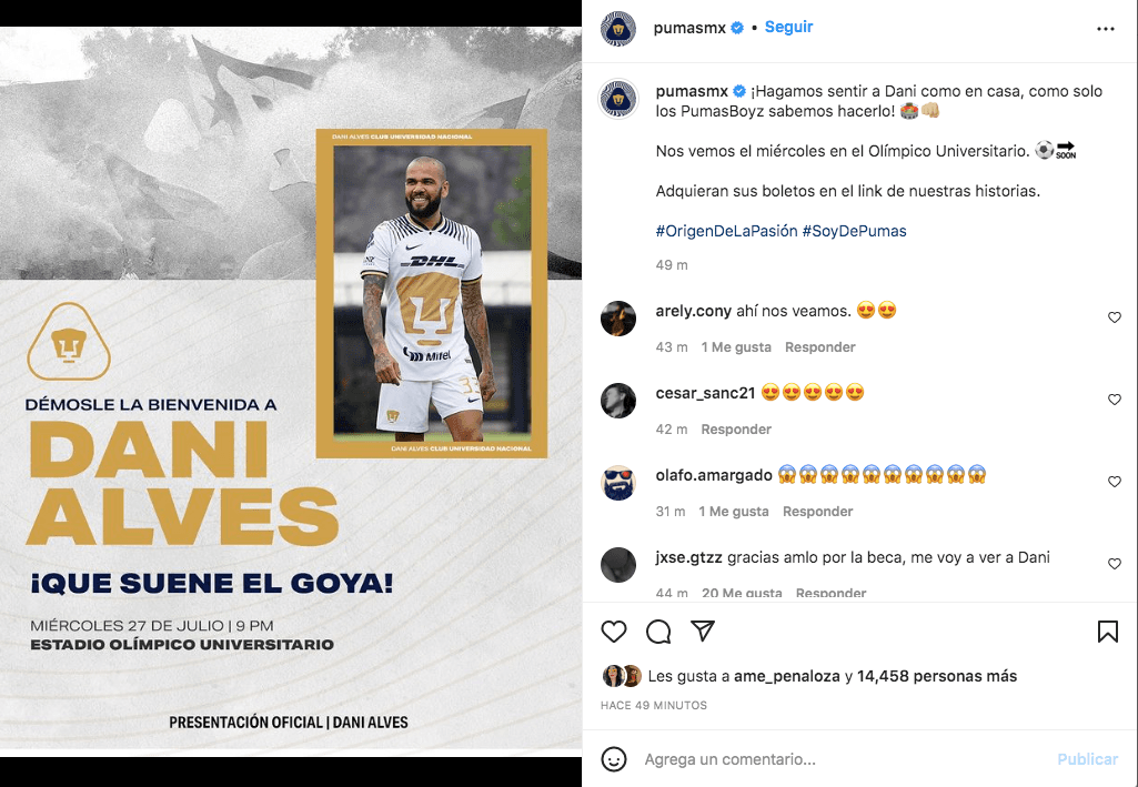 “¡Hagamos sentir a Dani como en casa, como solo los Pumas Boyz sabemos hacerlo! Nos vemos el miércoles en el Olímpico Universitario”, convocó Pumas en sus redes sociales para su presentación oficial.
