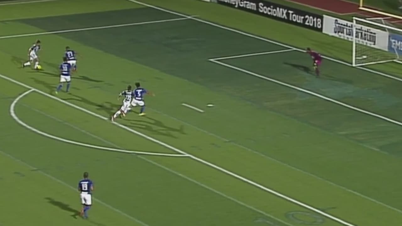 Daniel Lajud acecha el área de Allison en busca de otro gol rayado