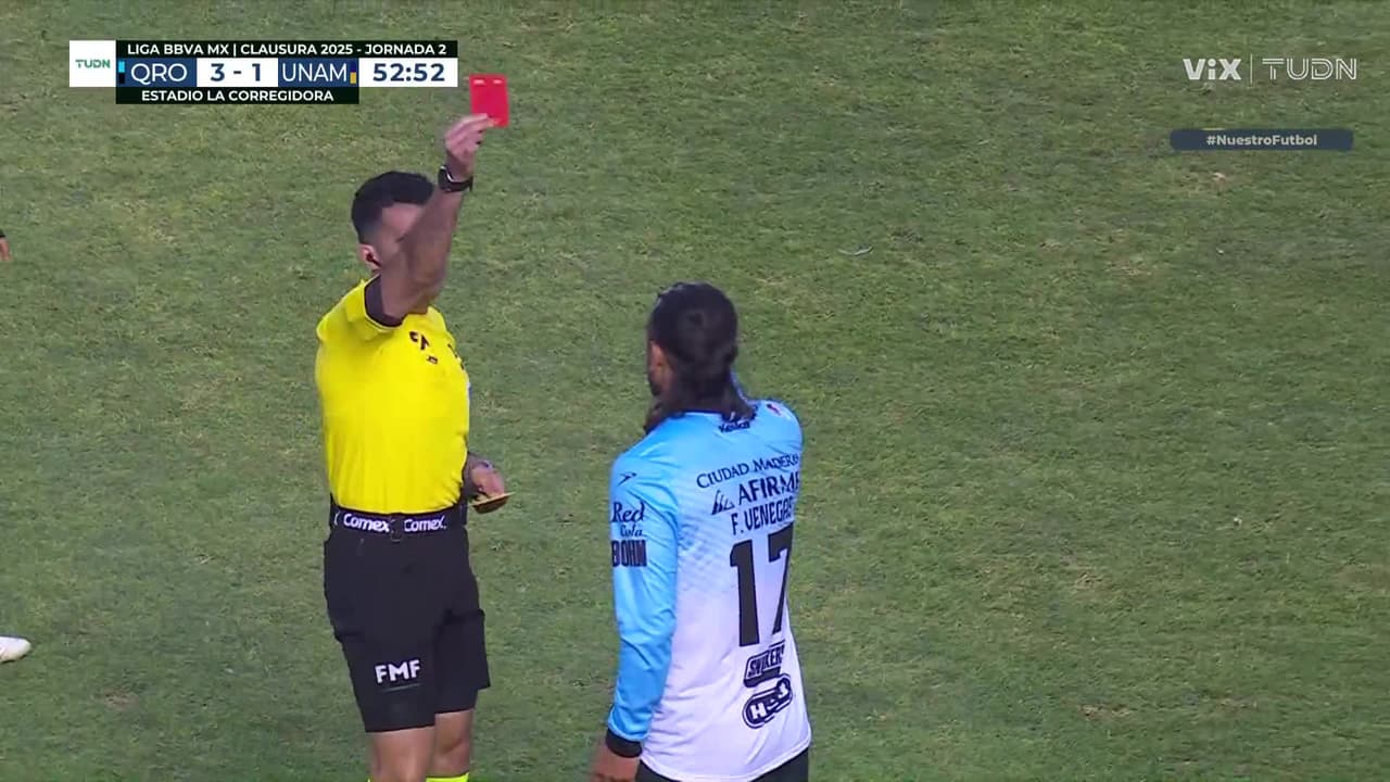 En cuestión de minutos el defensor mexicano se equivoca y le da un codazo a Bennevendo y el árbitro le saca la segunda amarilla.