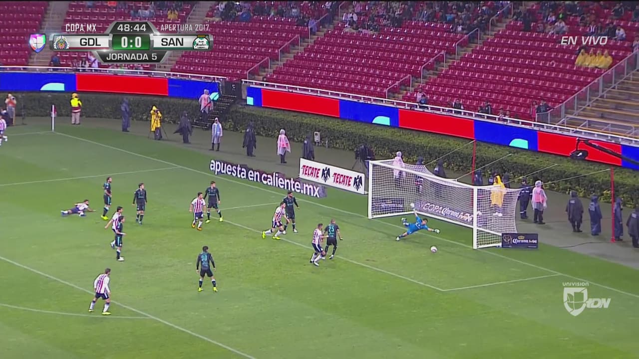 ¡De no creer! Chivas perdonó a Santos con remate machucado de Godínez en el área