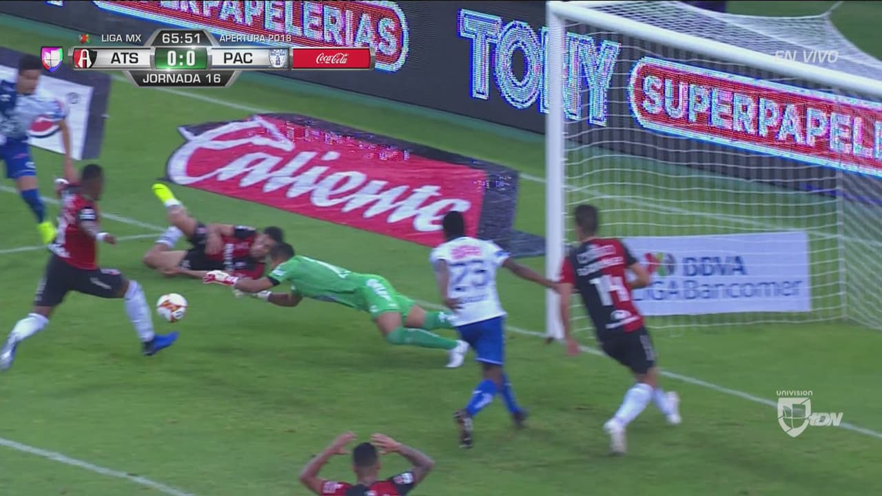 El cabezazo de Govea complicó a Blanco pero el guardameta terminó por quedarse con la pelota.