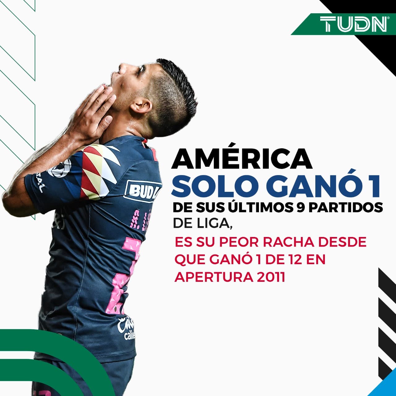 La peor racha del América fue en el Apertura 2011 cuando acumularon 11 encuentros sin ganar, por un sólo triunfo. Aquella ocasión su mal momento comenzó en la jornada siete cuando perdió 2-0 con el Pachuca; de ahí vino la debacle: siete derrotas y cuatro empates, uno de ellos fue el duelo pospuesto de la jornada cuatro ante el San Luis, que se jugó en septiembre y entró en la cuenta.