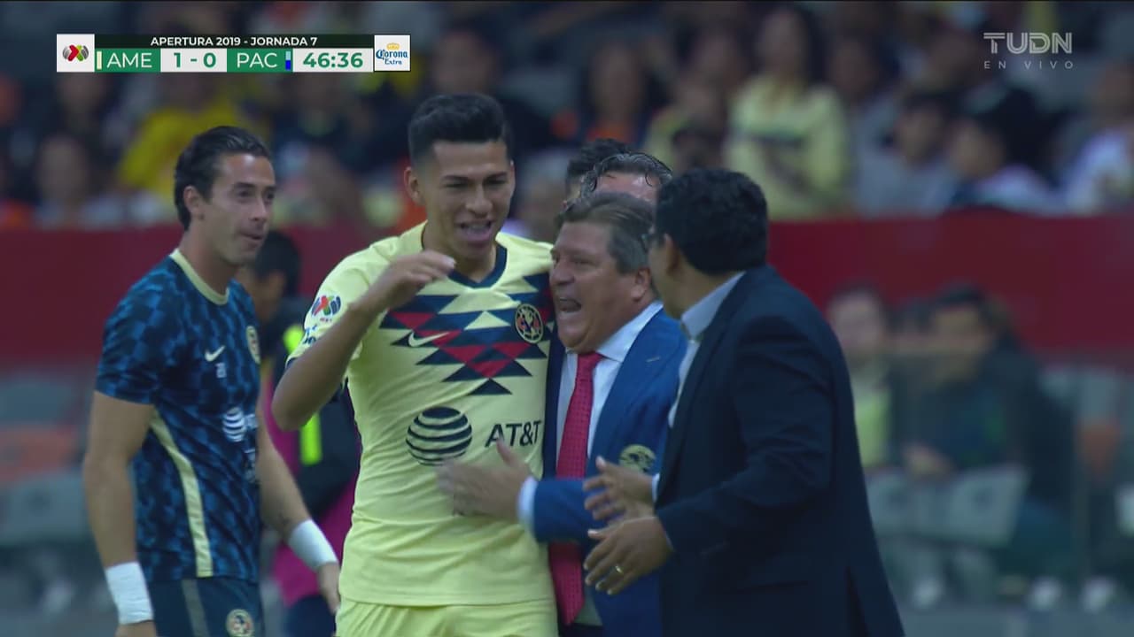 José Ángel López le pega de derecha y le da la ventaja al América con complicidad del arquero.
