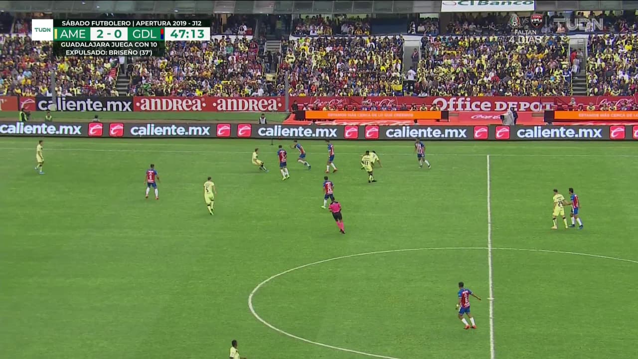 Briseño intentó robarle el balón al atacante azulcrema y al brincar le desprendió parte de la piel de la pierna derecha con sus tacos.