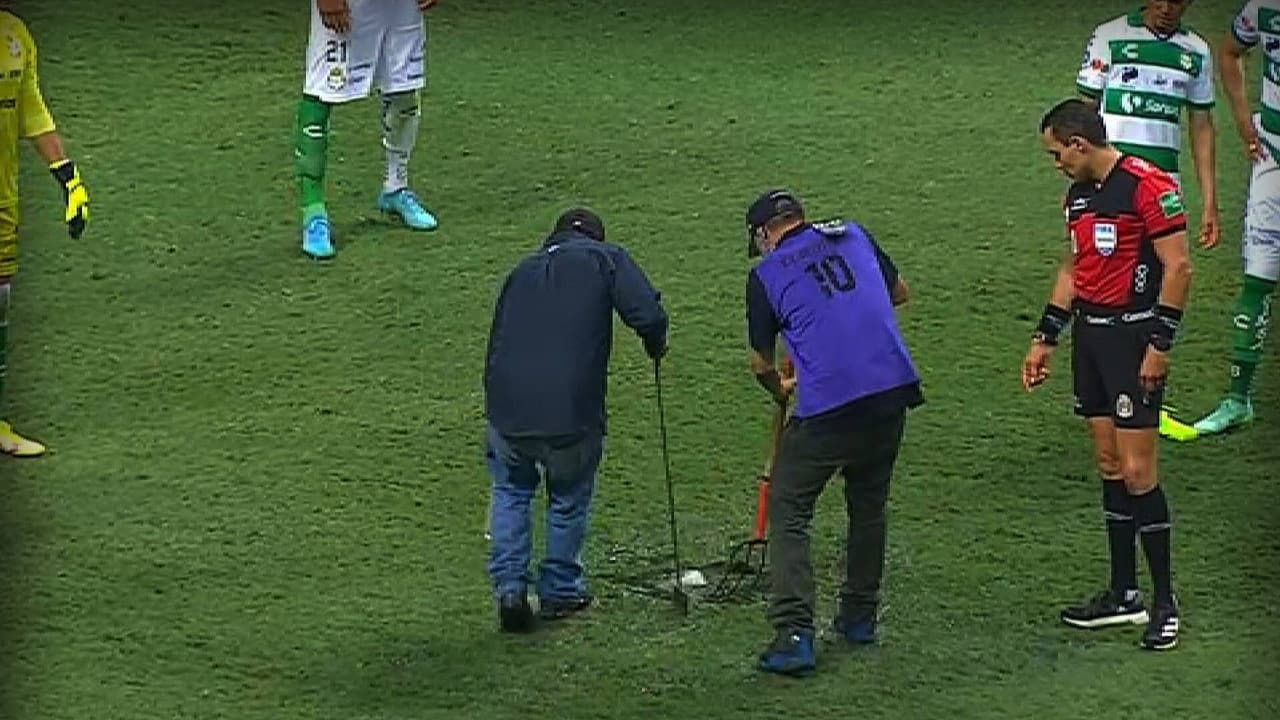 Comenzaba la segunda mitad y cuando los jugadores de Rayados y Santos estaban acomodándose en la cancha del Estadio BBVA una fuga de agua detuvo por unos minutos el encuentro.