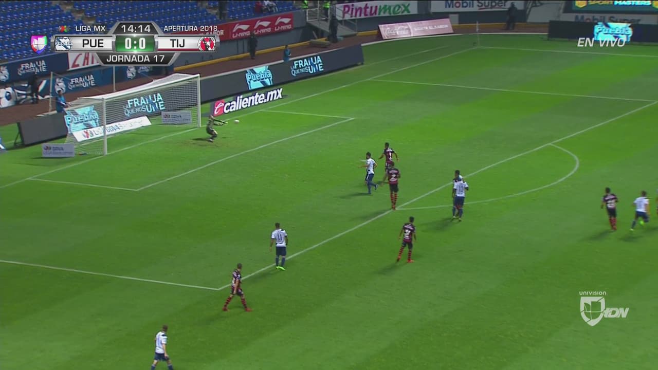 El jugador del Puebla aprovechó la pasividad de la defensa de Tijuana y con un remate de media distancia hizo estirar al portero Lajud.