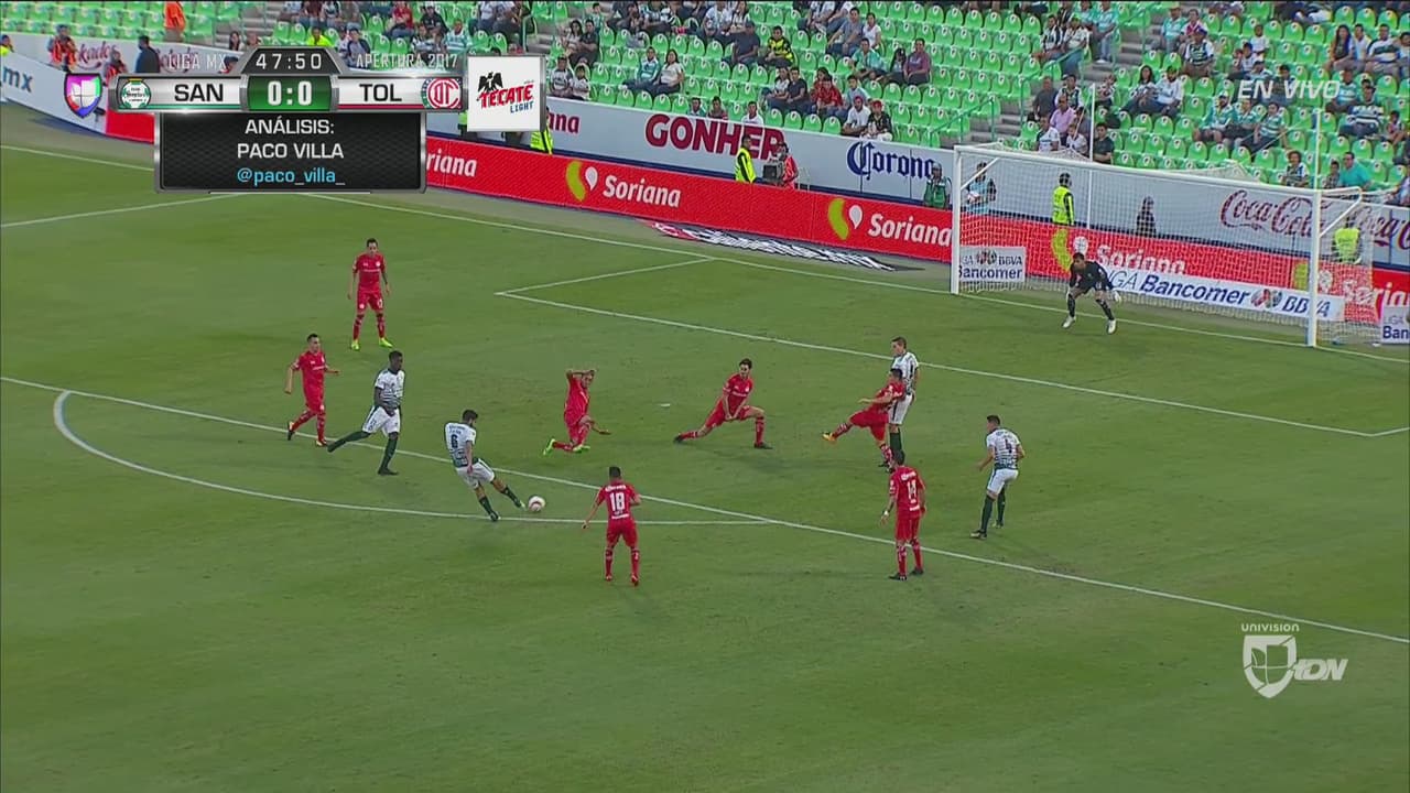 Todo en la misma jugada: el medio de Santos sacó un escopetazo y acto seguido protagonizó un 'blooper'.