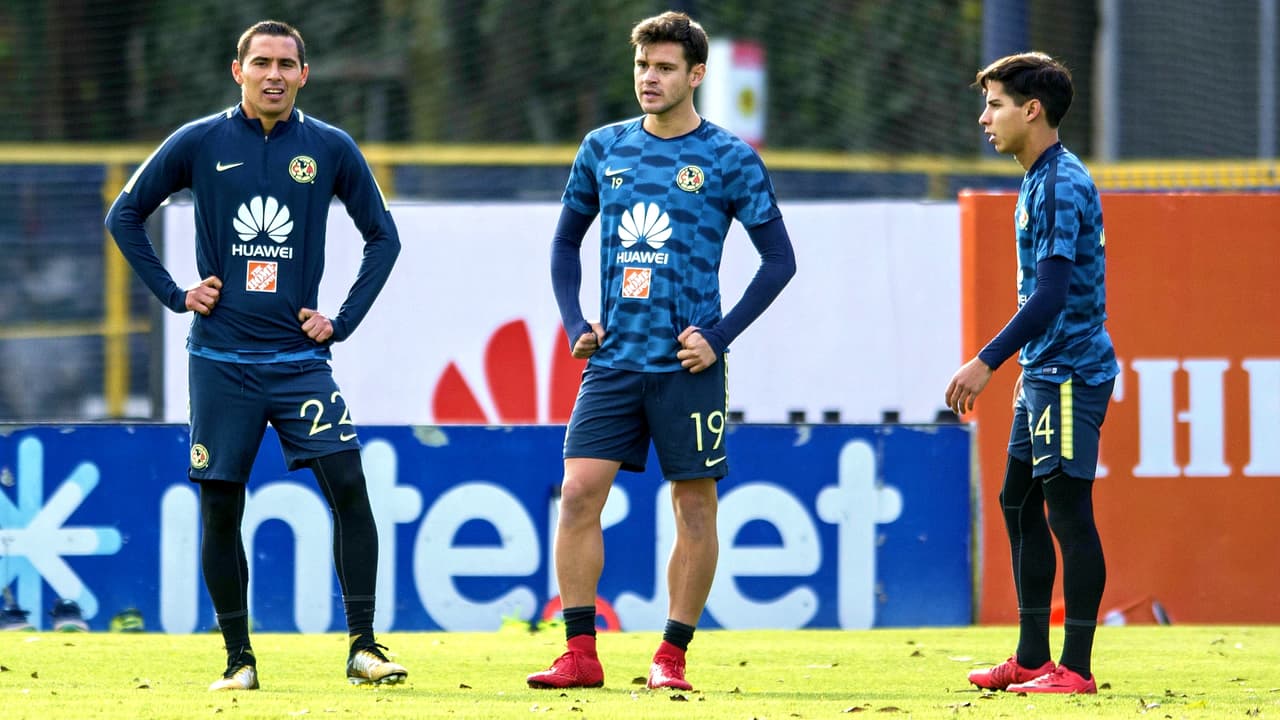 En duelos de uno contra uno durante una práctica del América, algunos jugadores demostraron su talento individual tratando de esquivar a sus propios compañeros. Aquí, los divertidos ejercicios.