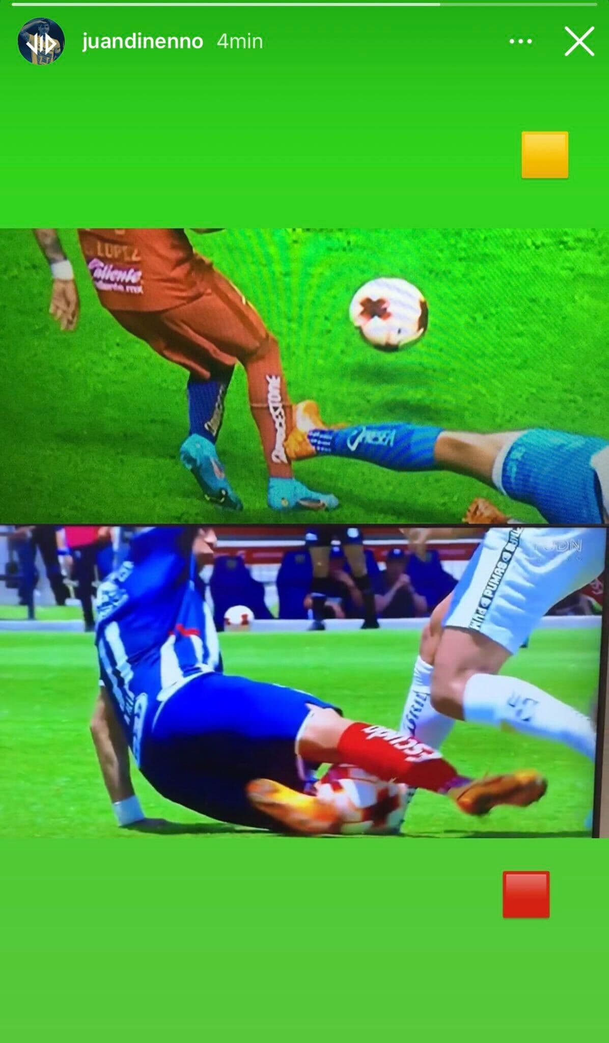 Después de hacer la publicación donde se ve la falta que cometió ante el Monterrey y derivó en la tarjeta roja, Dinenno decidió borrarla de su red social, pero los aficionados ya habían tomado pantallazos de la misma para comentarla.