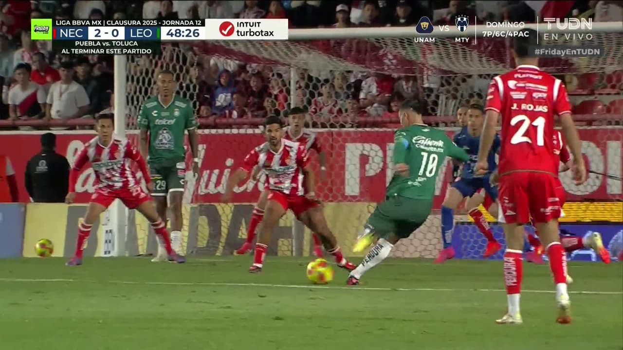 El portero de Necaxa estuvo atento para evitar el descuento de León en el marcador.