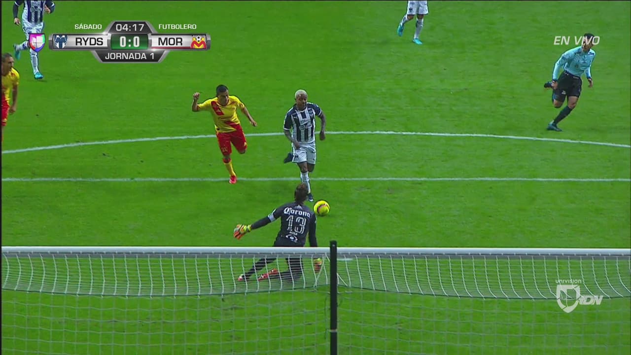 El delantero colombiano se coló hasta meterse al área y sacar un disparo que Sosa desvía; el rebote le cayó a Funes Mori que remató pero el balón chocó en la zaga michoacana.