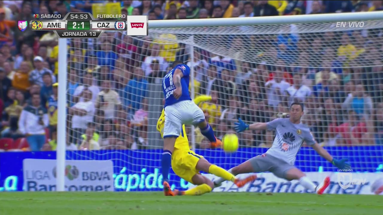 Gran jugada defensiva del zaguero azulcrema tras este disparo de Edgar Méndez.