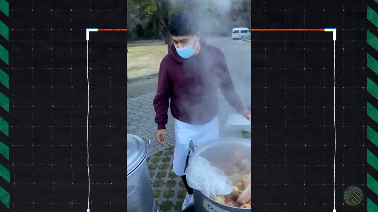 Efraín Velarde, defensa de Pumas, se encargó de llevar tamales al personal de la Cantera en el Día de la Candelaria.