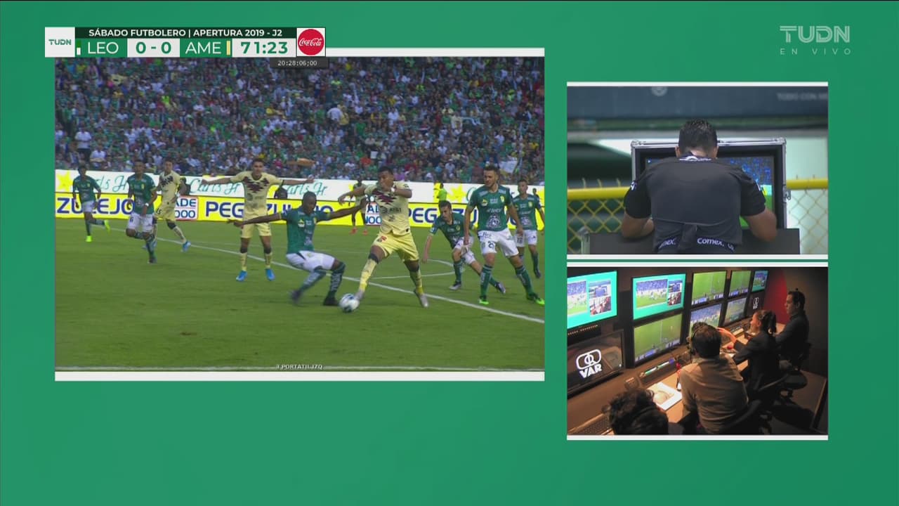 El silbante había marcado falta de Mosquera sobre Roger pero al final cambió de parecer al revisar en el monitor.