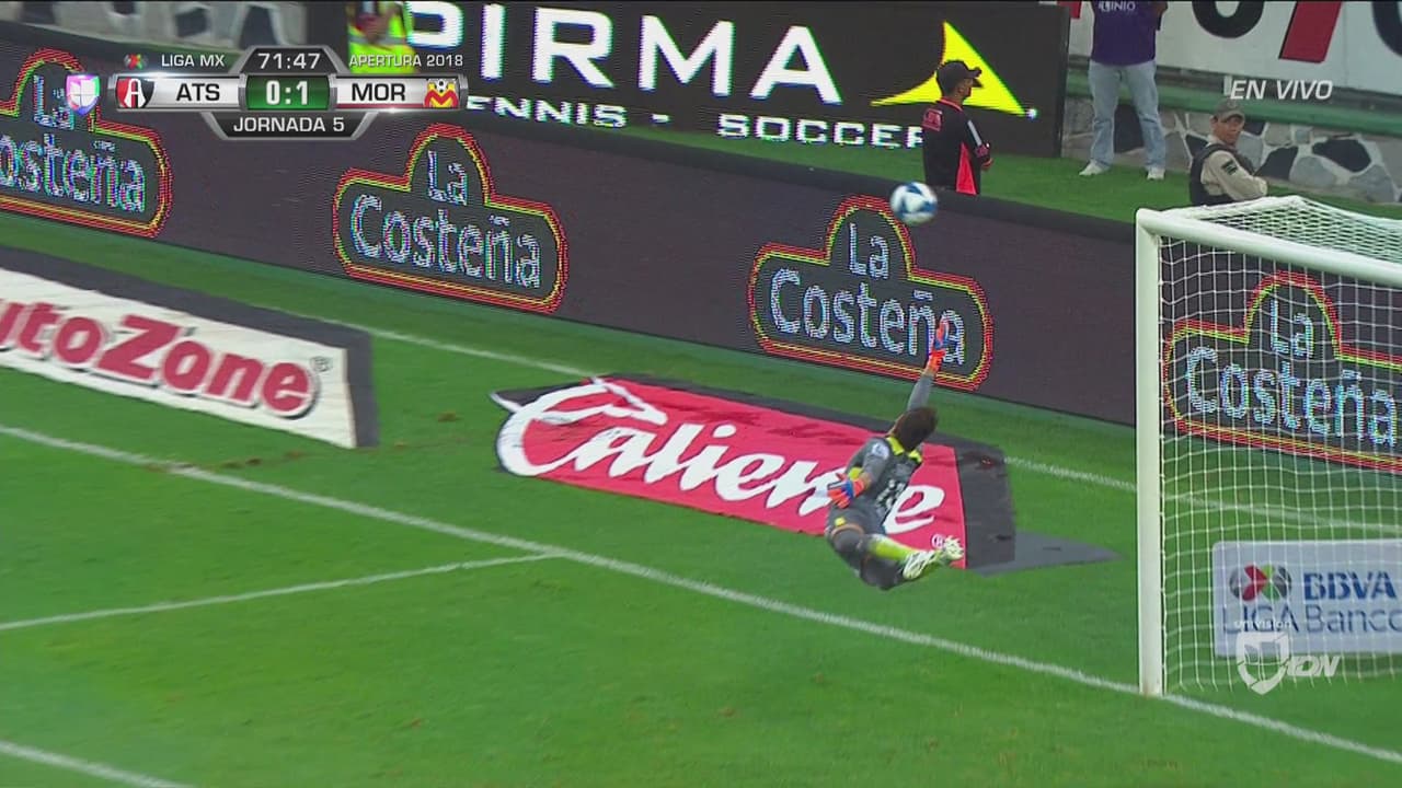Disparo de media distancia que sufrió un desvío y encendió las alarmas de 'los canarios'. Atlas sigue generando peligro pero continúa sin anotar en el torneo.