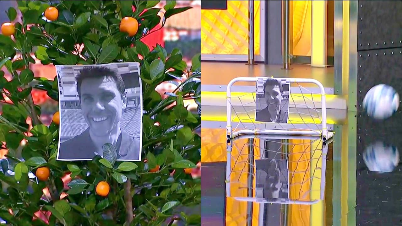 Ante su ausencia, sus compañeros de set cargaron al exfutbolista colocando su fotografía en el 'tronco' de un árbol de naranjas.