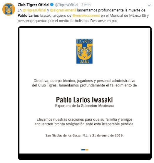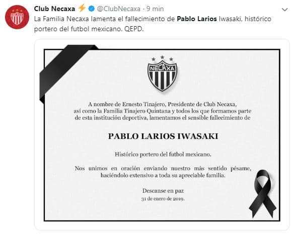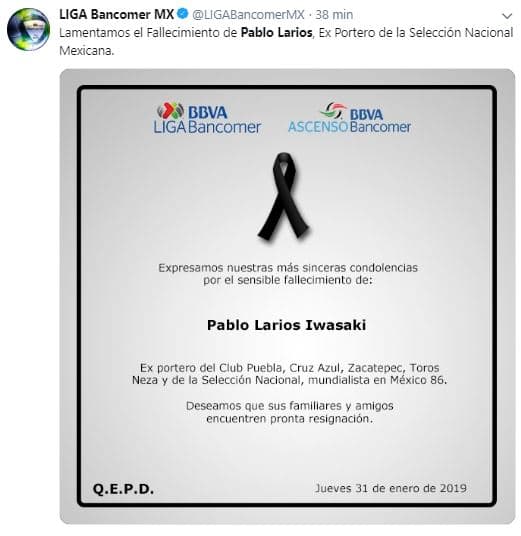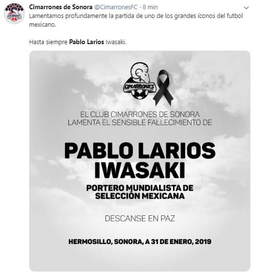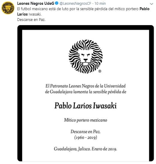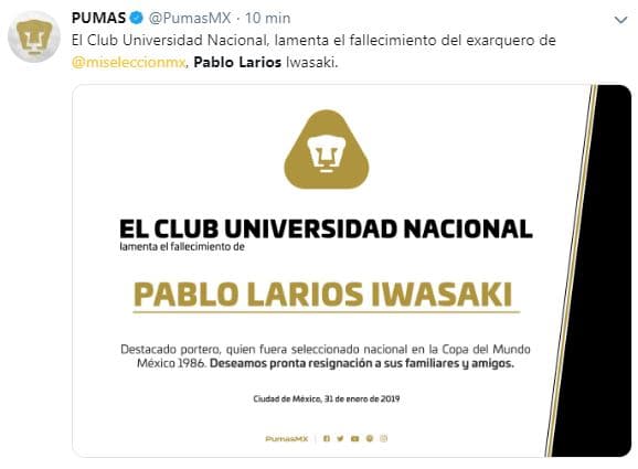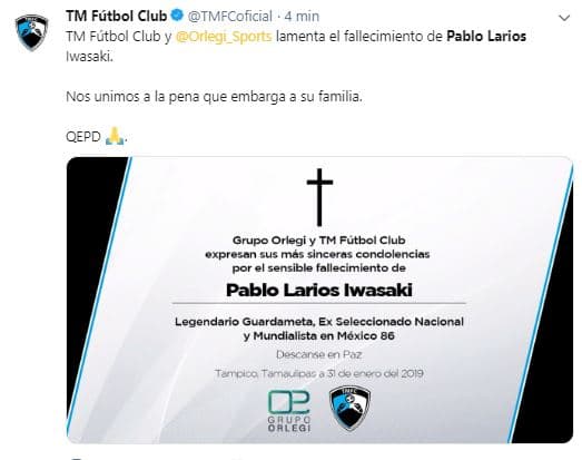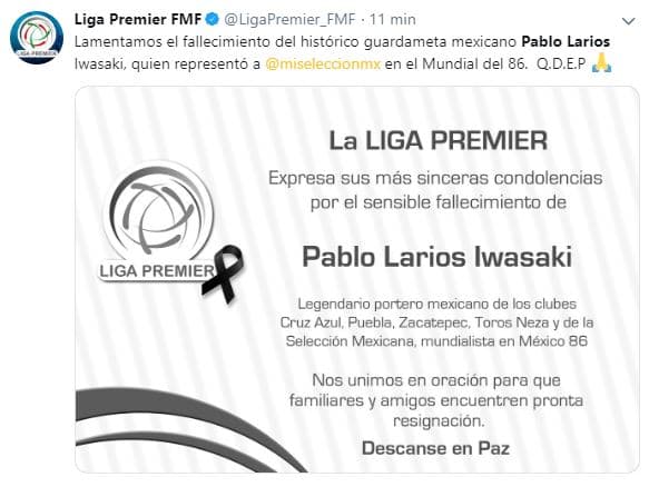 El fútbol mexicano se une en condolencias por la partida del histórico Pablo Larios